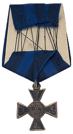 Польский знак отличия за военные достоинства (Virtuti Militari) 5-й степени, на ленте, сложенной в виде колодке. СПб монетный двор, 1831–1835 гг. Серебро, шелк (муар), 11,98 г. Размеры 33,9×29,3 мм. Сохранность очень хорошая, красивая патина. СРМ# 374. Смирнов# 463. Петерс# 95. Дьяков# 499.1 (R2). Биткин# 824 (R1). Тираж 100000 экз. Довольно редкий.