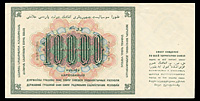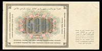 Двойной лист вексельной бумаги для личных долговых обязательств, образца 1915 года (на сумму до 100 рублей, цена 15 копеек), с напечатанными фальшивыми казначейскими знаками 40 рублей образца 1917 года. На оборотной стороне векселя изображения денежных знаков погашены печатью «Комиссаръ Народного III Московского банка». Сохранность листа очень хорошая, следы сгибов. Изображение данного листа приведено в книге «Бумажные денежные знаки России и СССР», издательства «Финансы и статистика», Москва 1991, за авторством А.И.Малышева, В.И.Таранкова и И.Н.Смиренного — фото стр. 211, текст стр. 185. Крайне редкий.