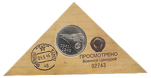 Жетон в память открытия в г. Воронеже памятника военному почтальону (май 2015 г.)