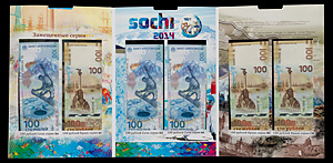 Памятные банкноты России. Билет 100 рублей 2014 года