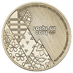 Медаль участника команды Российской Федерации на XXII зимних Олимпийских играх (Сочи, 2014 г.). ММД, 2013 г. Без подписи медальера. Нейзильбер; 80,83 г. Диаметр 50,1 мм, медаль вложена в оригинальную коробку. Сохранность отличная.