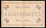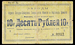 Заводы Первого Западно-Сибирского Товарищества Извести и Портланд Цемента, станция Яшкино Томской железной дороги. Обязательство 10 рублей 1918 года, первый выпуск, № 0912. Сохранность очень хорошая. Кардаков# нет. Рябченко# 9228. Редкое.
