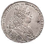 1 рубль 1728 года. Лиц. ст.: портрет образца 1727 г. Об. ст.: буква «Ц» с завитком. Серебро, 27,70 г. Сохранность отличная, легкая патина, штемпельный блеск. ГМ# 3.15. Severin# 961. Уздеников# 0685. Дьяков# 8. Биткин# 43. Петрунин# А-№ 46 (точка). Довольно редкий, 3 рубля по Петрову.