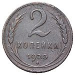 2 копейки 1925 года. Гурт рубчатый. Медь, 6,44 г. Сохранность очень хорошая, плотная темная патина. ФедоринVI# 8. Очень редкая.