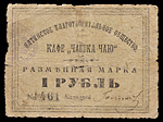 Ялтинское Благотворительное общество, Кафе «Чашка чаю». Разменная марка 1 рубль н/д, № 1461. С оттиском штампа общества и подписью казначея. Сохранность очень хорошая. Рябченко# 19431 (Р). Очень редкая.