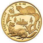 200 рублей 1994 года, ММД. «Сохраним наш мир. Соболь». Золото, 31,24 г. Сохранность полированная, прекрасная.