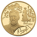 200 рублей 2010 года, СПМД. «А. Чехов 1860–1904, Дама с собачкой». Золото, 31,32 г. Сохранность полированная, прекрасная.