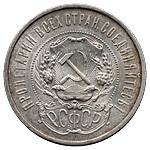 1 рубль 1921 года, АГ. Лиц. ст.: шт. 1.1 — без полуточки. Серебро, 19,90 г. Сохранность отличная, штемпельный блеск, дефект кромки гурта. ФедоринVI# 1.