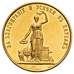 Медаль для учениц женских гимназий Министерства народного просвещения «За благонравие и успехи в науках». СПб монетный двор, конец XIX — начало XX в. Медальер А.А. Грилихес, сын (лиц. ст. — на обрезе изображения: А·Г; об. ст. — справа на линии обреза изображения: А·А·Г·), 1896 г. Золото; 25,90 г. Диаметр 32,7 мм. Смирнов# 1107/б. Дьяков# 909.9 (R2). Сохранность почти отличная. Довольно редкая.