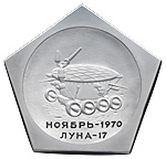 Космический вымпел (Государственный знак) автоматической межпланетной станции «Луна-17», пробный. ЛМД, 1970 г. Худ. Г.М. Тургенев. Алюминий, эмаль; 24,70 г. Размеры 48,1×50,2 мм (правильный пятиугольник). Надпись вымпела расположена в нижней части лиц. ст. Сохранность отличная. Очень редкий.