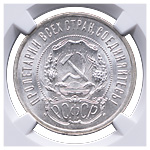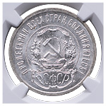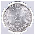 50 копеек 1921 года, АГ. Серебро. Монета в пластиковой капсуле (слабе) NGC, MS 63. ФедоринVI# 1.