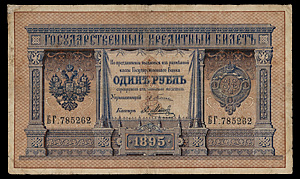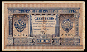 Государственный Кредитный Билет 1 рубль 1898 года, БУ 746334. С подписью управляющего Э. Плеске, кассир Брут. Сохранность очень хорошая. Кардаков# I.1.678. Денисов# К-24.1. Рябченко# 701.
