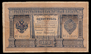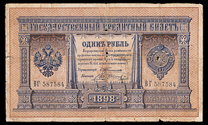 Государственный Кредитный Билет 1 рубль 1898 года, ВВ 176576. С подписью управляющего С. Тимашева, кассир Овчинников. Сохранность очень хорошая. Кардаков# I.1.686. Денисов# К-24.2. Рябченко# 701а.