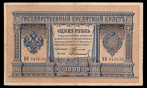 Государственный Кредитный Билет 1 рубль 1898 года, ВИ 940636. С подписью управляющего С. Тимашева, кассир Свешников. Сохранность очень хорошая. Кардаков# I.1.686. Денисов# К-24.2. Рябченко# 701а.
