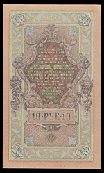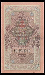 Государственный Кредитный Билет 10 рублей 1909 года, ЗЬ 967285. С подписью управляющего И. Шипова, кассир Гаврилов. Царский выпуск. Сохранность почти отличная. Кардаков# I.1.711. Денисов# К-33.3. Рябченко# 711б.