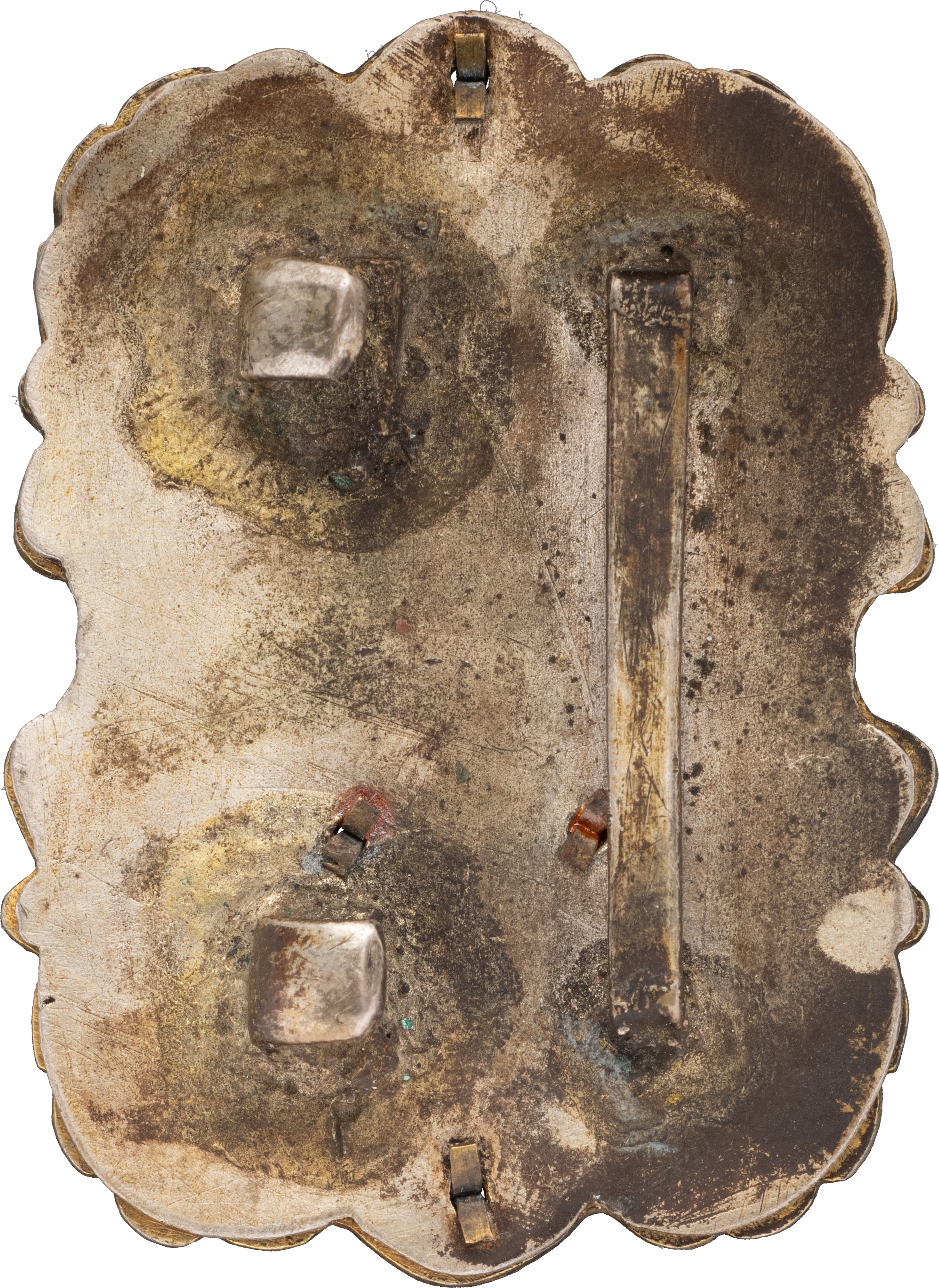 Пряжка от ремня. Российская Империя, конец XVIII — начало XIX в. Неизвестная мастерская. Бронза, позолота, серебрение, 37,29 г. Размеры 62,6×45,7 мм. Сохранность отличная. Довольно редкая.