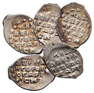 Лот из 5 проволочных серебряных монет: Князь Иван IV Васильевич (1533–1584). Копейка