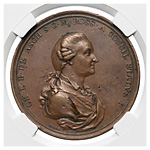 Медаль в честь барона Е.Ф. Аша. СПб монетный двор, 1770 г. Медальер И.Б. Гасс (лиц. ст. — под обрезом изображения: GASS). Бронза. СРМ, персоны# 23. Иверсен# XV. Дьяков# 151.1 (R1). Алексеев А.Н. Медаль в честь барона Е.Ф. Аша // Нумизматический сборник ГИМ, т.XVI. М., 2003. С. 300–305. Медаль в пластиковой капсуле (слабе) Национального нумизматического реестра, XF40BN PK5249. Редкая.