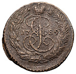 2 копейки 1789 года, ЕМ. Медь, 19,76 г. Сохранность очень хорошая, следы коррозии и чистки. ГМ# 28.10. Brekke# 179. Уздеников# 2814. Дьяков# 634. Биткин# 682.