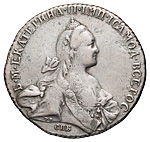 1 рубль 1773 года, СПБ-ТИ-ЯЧ. Серебро, 25,25 г. Сохранность почти отличная, мелкие царапины, следы чистки. ГМ# 15.4. Severin# 2079. Уздеников# 1051. Дьяков# 291. Биткин# 216. 2 рубля 50 копеек по Петрову.