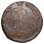 5 копеек 1773 года, ЕМ. Медь, 55,55 г. Сохранность очень хорошая, приятная патина, дефекты заготовки. ГМ# 15.12. Brekke# 231. Уздеников# 2727. Дьяков# 299. Биткин# 622.