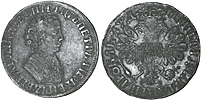 Полуполтинник 1704 г. МД. Об. ст.: обозначение монетного двора над лапами орла. Серебро, 6,86 гр. Сохранность VF-XF (красивая патина). Узд#0470 (—).
