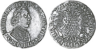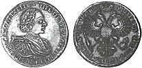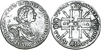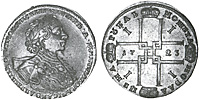 1 рубль 1721 г. К. Серебро, 28,37 гр. Сохранность XF. Узд#0598.