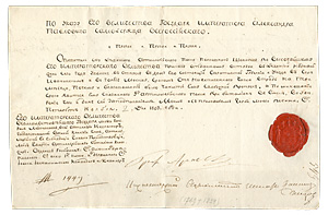 Отпускной паспорт за подписью графа А.А.Аракчеева от 2 ноября 1803 г.