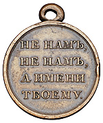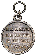 Надпись на об. ст. медали является непрямой цитатой из Псалтири: «Не нам, Господи, не нам, но имени Твоему даруй славу, по милости Твоей и по истине Твоей!» (Пс. 113, 9).