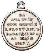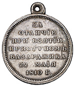 Медаль «За отличие при взятии приступом Базарджика» 22 мая 1810 г