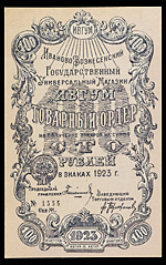 Иваново-Вознесенский Государственный Универсальный Магазин «ИВГУМ». Товарный ордер 100 рублей 1923 года