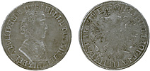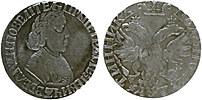 Полуполтинник 1703 г. Об. ст.: орёл обычного рисунка. Серебро, 6,8 гр. Сохранность F+. Узд#0461 (черта с точкой). Severin#12 (черта с точкой). ГМ№345 (довольно редкая). Очень редкая.