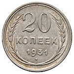 20 копеек 1931 года. Тип предыдущих лет. Серебро, 3,47 г. Сохранность почти отличная, приятная старая патина. ФедоринVI# 20. Очень редкие.