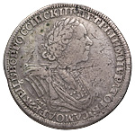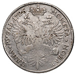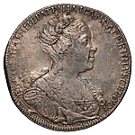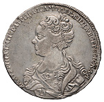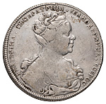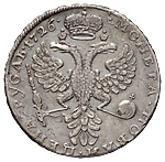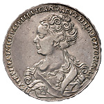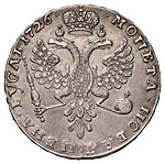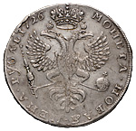 1 рубль 1726 года, без обозначения монетного двора. Лиц. ст.: портрет Императрицы влево. Об. ст.: легенда разделена точками. Серебро, 29,15 г. Сохранность почти отличная, чистка. ГМ# 8.7. Severin# 820 (точка). Уздеников# 0644. Дьяков# 17. Биткин# 31. Редкий, 3 рубля по Ильину.