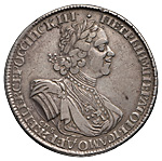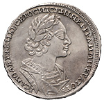 1 рубль 1723 года, без инициалов медальера. Лиц. ст.: портрет погрудный. Гурт: «РОССИСКОI ** РУБЛЬ* МОСКОВСКОГО*ДВАРА***». Серебро, 27,58 г. Сохранность очень хорошая, чистка. Severin# 586–602. Уздеников# 0610. Дьяков# 53, вар. ДьяковЗС# 1347 (R0). Биткин# 916. 3 рубля по Петрову.