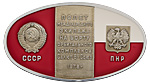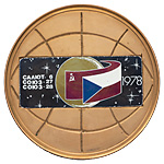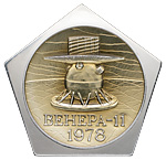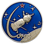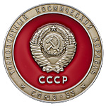 3. Вымпел полета советско-чехословацкого экипажа на борту орбитального комплекса «Салют-6» — «Союз-27» — «Союз-28». 1978 г. Бронза, художественные вставки из сигала; 52,04 г. Диаметр 68,0 мм. «Энергия» — нет, аналог — с.729.