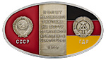6. Космический вымпел полета советско-германского экипажа на борту орбитального комплекса «Салют-6» — «Союз». ЛМД, 1978 г. Художник Г.А. Балашова. Алюминий, эмаль; 58,39 г. Размеры 61,0×108,4 мм. Сохранность отличная. «Энергия», с. 731.