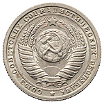 15 копеек 1953 года. Пробные. Лиц. ст.: тип I — круговая надпись вокруг герба. Об. ст.: тип IIб — цифры даты в картуше, вдоль канта мелкоштриховой ободок, над цифрами номинала нет звезды. Медно- цинково-никелевый сплав, 2,71 г. Сохранность отличная, лёгкая патина, штемпельный блеск. Ушаков, Федорин# 101 Р-4. ФедоринVI, Приложение 6, С.455. 5. Очень редкие.