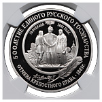 25 рублей 1991 года, ЛМД. «500-летие единого русского государства. Отмена крепостного права 1861 г.». Палладий. Монета в пластиковой капсуле (слабе) NGC, PF 70 ULTRA CAMEO.