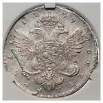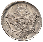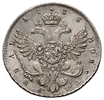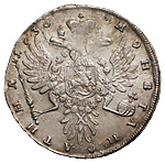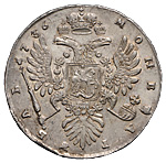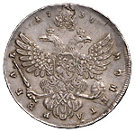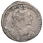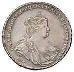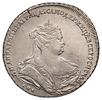 1 рубль 1736 года. Лиц. ст.: портрет с кулоном из трех жемчужин на груди, без лент на левом плече. Серебро, 25,50 г. Сохранность превосходная, красивый штемпельный блеск. ГМ# 10.3. Severin# 1230. Уздеников# 0726. Дьяков# 12. Биткин# 128. Полуйко# 36.18, 416. 3 рубля по Петрову.