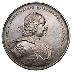 Апраксин Федор Матвеевич (27.11.(7.12). 1661–10(21).11.1728, Москва) — граф (с 1709), сподвижник Петра I, генерал-адмирал (1708), первый президент Адмиралтейств-коллегии, сенатор (с 15.12.1717). Один из создателей Российского военно-морского флота, командовал русским флотом в Северной войне и Персидском походе (1722). Медаль отчеканена в память отбитой Ф.М. Апраксиным атаки шведов в устье Невы в 1708 г.
