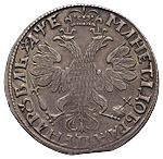 1 рубль 1705 года, МД. Об. ст.: корона закрытая, следы букв «МД» под лапами орла. Серебро, 28,04 г. Сохранность почти отличная, густая старая патина. ГМ# нет. Severin# 179 (черта), вар. Уздеников# 0485 (точка). Дьяков# 8, вар. ДьяковЗС# 183 (R2). Биткин# нет. Очень редкий, 8 рублей по Петрову.