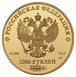 1000 рублей 2014 года, СПМД, «Сочи 2014». Золото, 156,30 г. Сохранность полированная, прекрасная.