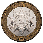 10 рублей 2015 года, СПМД. «70 лет Победы, Орден». Образцовый экземпляр улучшенного качества чекана. Гурт рубчатый, без надписи. Биметалл, 8,41 г. Сохранность отличная. Редкие.