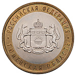 10 рублей 2014 года, СПМД, Тюменская область. Биметалл, 8,44 г. Образцовый экземпляр улучшенного качества чекана. Гурт рубчатый, без надписи. Сохранность близкая к превосходной, лёгкая патина. Редкие.