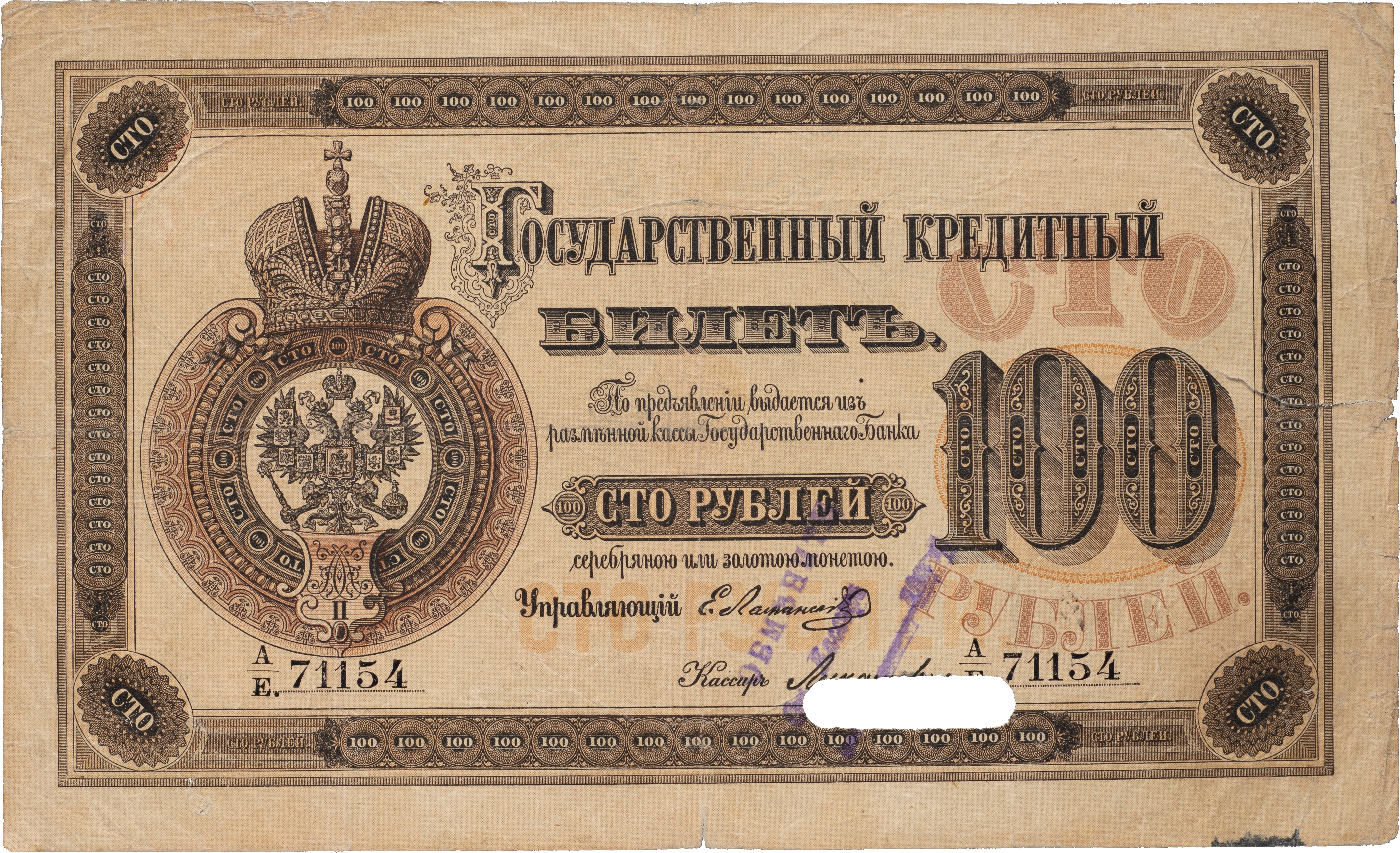 Государственный Кредитный Билет 100 рублей 1876 года