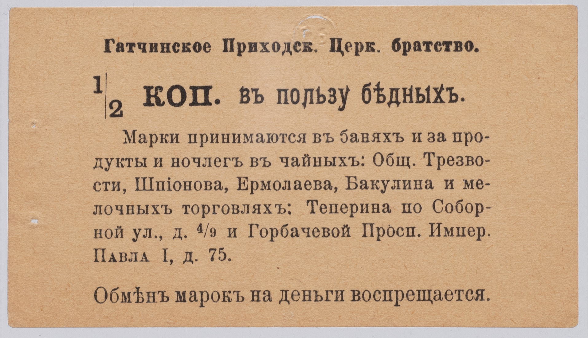 Гатчинское Приходское Церковное Братство. Марка 1/2 копейки в пользу бедных