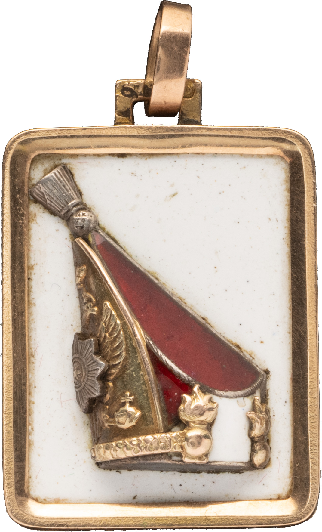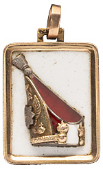 Жетон Лейб-гвардии Павловского полка, № 114. С.-Петербург, 1908–1917 гг. Неизвестная мастерская. Клейма на ушке с лиц. ст. жетона: СПб окружного пробирного управления в щитке в форме лопатки [альфа, женская головка в кокошнике, вправо, 56] и нечитаемое клеймо. Золото, серебро, эмаль, 12,45 г. Размеры 27,6×19,4 мм. Сохранность отличная. Петерс, Ильина# 6. Утвержден Главнокомандующим войсками Гвардии и Петербургского военного округа Е.И.В. Великим Князем Владимиром Александровичем 21 сентября 1891 г. Принадлежал С.Н.Гладкому. На об. ст. жетона помещена монограмма владельца из двух букв: «С» белой эмали и «Г» красной эмали; внизу выгравирован номер: «№ 114.». Редкий.