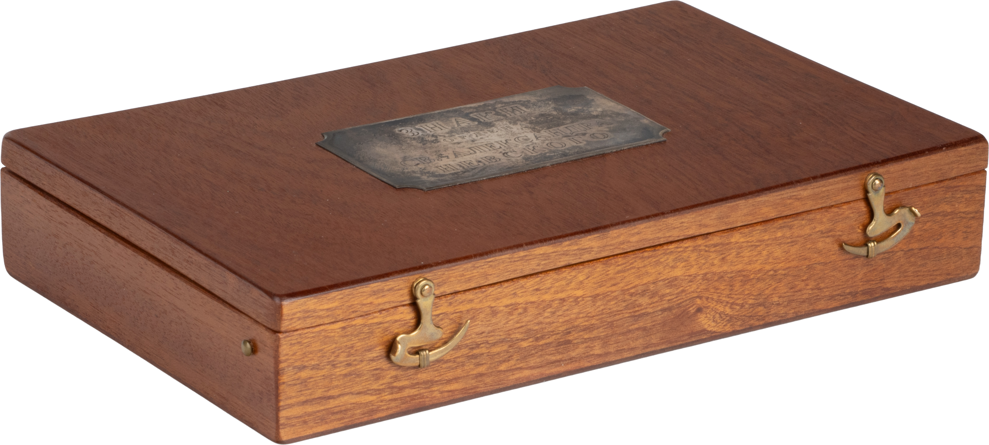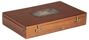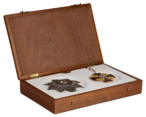 Знак ордена, звезда и лента вложены в специально изготовленную для комплекта деревянную коробку. Очень редкий и интересный комплект.