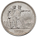 1 рубль 1924 года, ПЛ. Лиц. ст.: шт. 1.2 — одна ость. Об. ст.: шт. Б — окна широкие. Серебро, 20,00 г. Сохранность отличная, штемпельный блеск, мелкие царапины. ФедоринVI# 11. Довольно редкий.